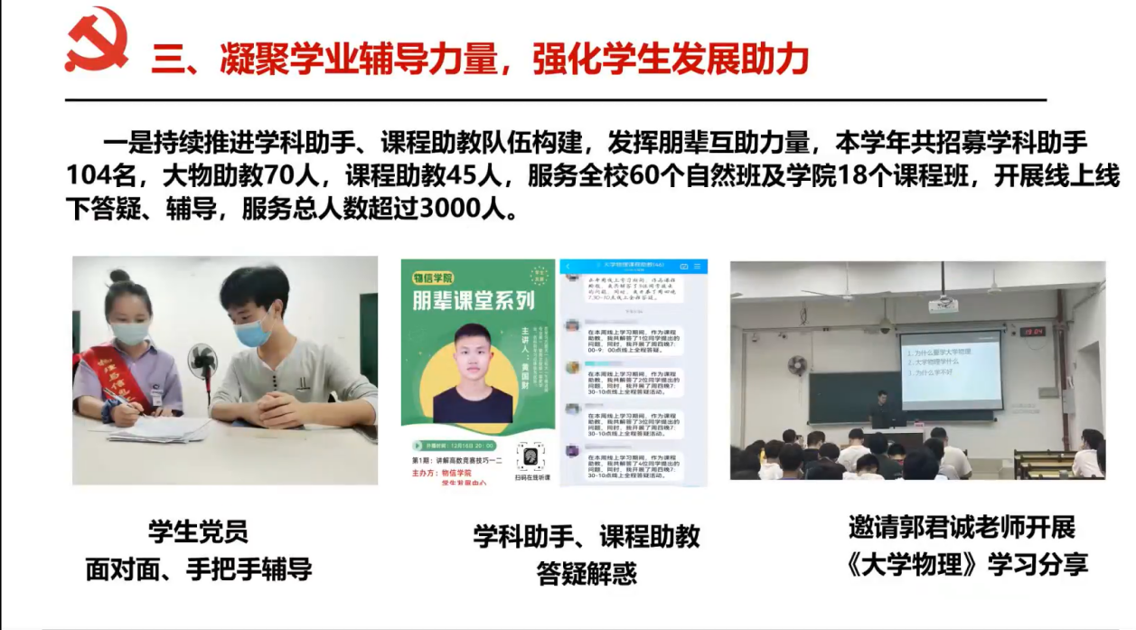 2022年度学生党支部书记抓党建述职评议考核工作采取现场述职和书面述职相结合的方式进行。此次述职会上,11位党支部书记结合工作实际,重点围绕贯彻落实校、院党委关于党建工作的部署和要求以及党建重点任务情况进行全面汇报,既总结成绩、展示亮点,也深入剖析党建工作存在问题和薄弱环节,提出整改措施及下一步努力方向。 述职完毕后,参会人员对各支部书记述职情况及现实表现进行了评分。