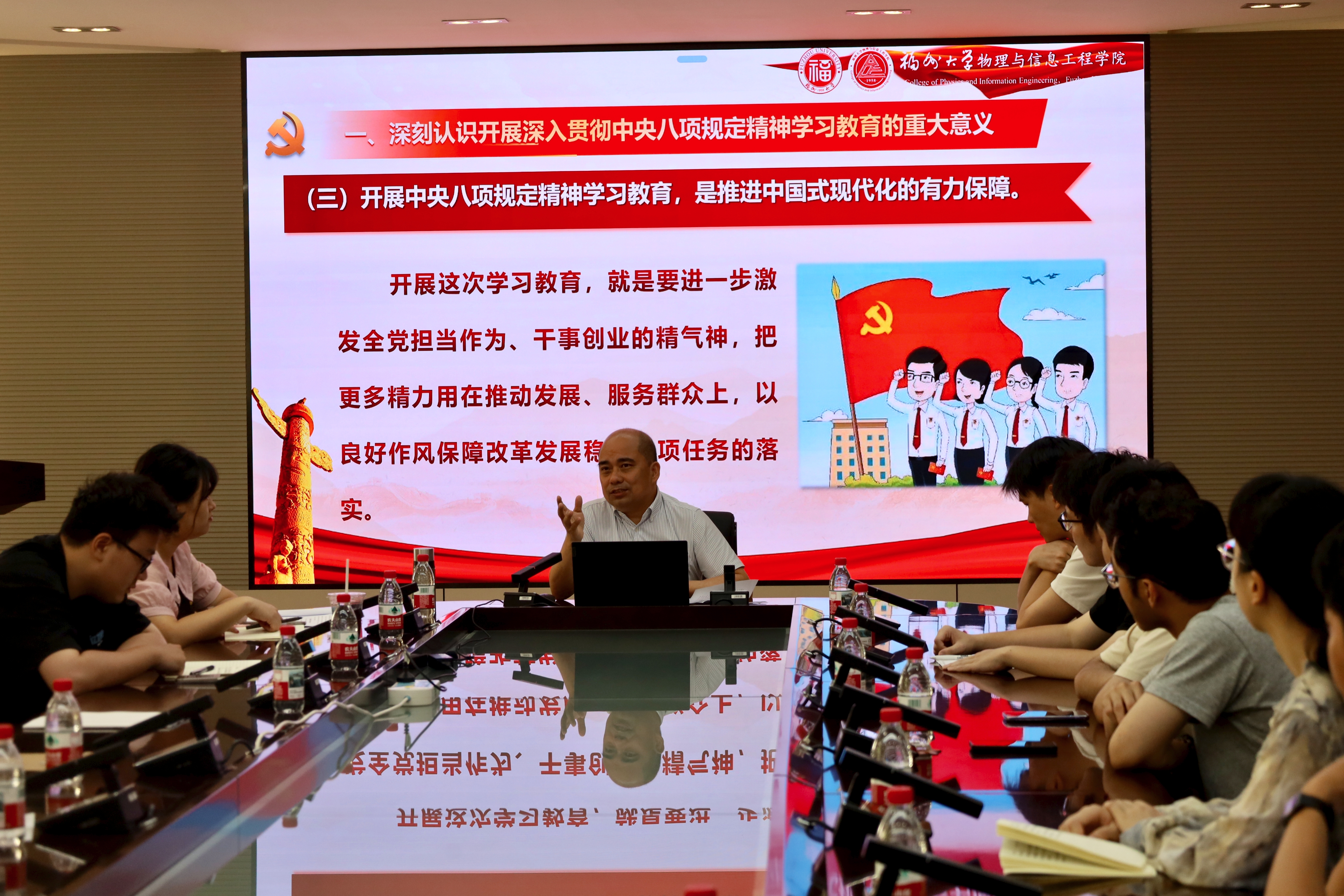 魏金明书记围绕“深刻认识开展深入贯彻中央八项规定精神学习教育的重大意义”“全面理解中央八项规定精神的核心要义”“如何践行中央八项规定精神做新时代合格党员”三个方面展开讲授。他指出,开展中央八项规定精神学习教育,是巩固拓展主题教育和党纪学习教育成果、纵深推进全面从严治党的重要举措,是密切党群干群关系、巩固党的执政基础的必然要求,是推进中国式现代化的有力保障。随后,他从中央八项规定与“中央八项规定精神”的辩证关系为大家进行了深入的解读。他强调,当前“四风”问题呈现隐形变异趋势,通过学术造假、虚报经费、奢侈消费等典型案例来警示党员需时刻警惕“温水煮青蛙”式蜕变。最后,他勉励与会党员要成为理论武装的表率、服务师生的模范和攻坚克难的先锋,既要“勤学修德”夯实专业基础,也要“严以律己”恪守学术诚信,更要“实学实干”将论文写在祖国大地上,在科研攻关中勇挑重担,以实干担当诠释初心。