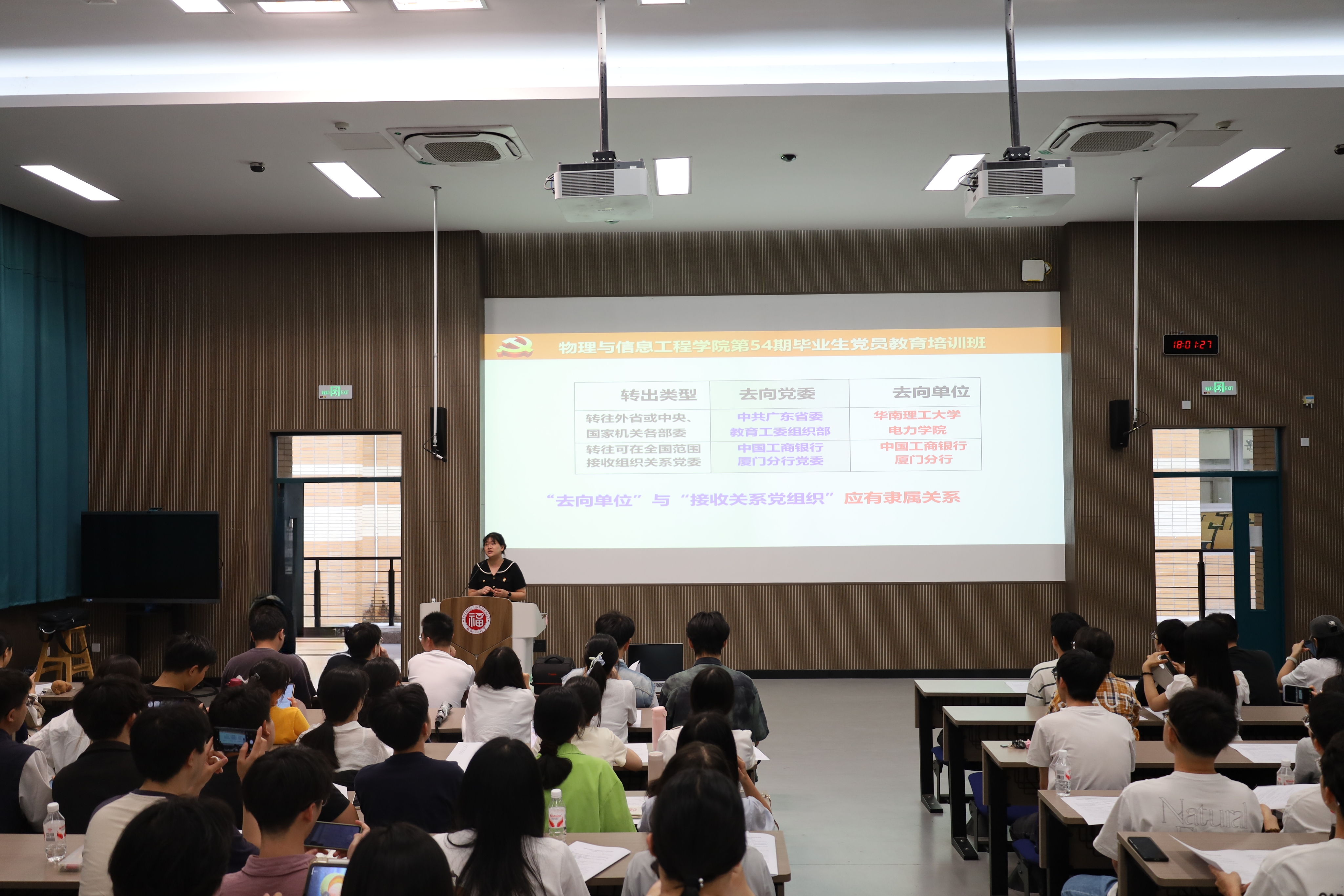 举办第54期毕业生党员教育培训班。学院党委副书记郑志刚、毕业班辅导员庄琪、陈山及2024届全体毕业生党员参加培训,活动由组织员刘媛主持。