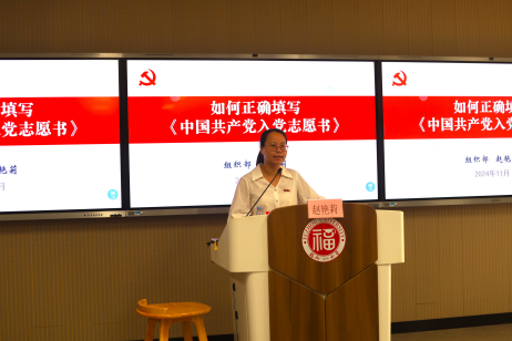 党委组织部组织科科长赵艳莉老师主讲,授课主题为《如何正确填写<中国共产党入党志愿书>》,旨在帮助发展对象掌握入党志愿书填写规范,夯实入党基础。