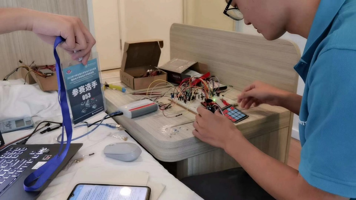 本届TI杯模拟邀请赛因突遇杭州疫情,原赛区杭州电子科技大学被实行封控管理。经组委会协调,本次邀请赛调整了赛题与赛程,并以各参赛队在酒店房间内参赛的方式进行竞赛。在赛前辅导老师张昂老师的悉心指导和赛时带队老师谢俊慧老师的殷切关怀下,参赛队员们得以全身心投入到本次特殊的比赛中。在短短24小时的极限赛程中,林晋锦、陈子楠、叶永檬团队全力以赴、奋勇拼搏,克服了重重困难,完成了唯一赛题——“李萨如图形演示装置”中的大部分的功能要求与性能指标,并保证了系统的稳定运行。