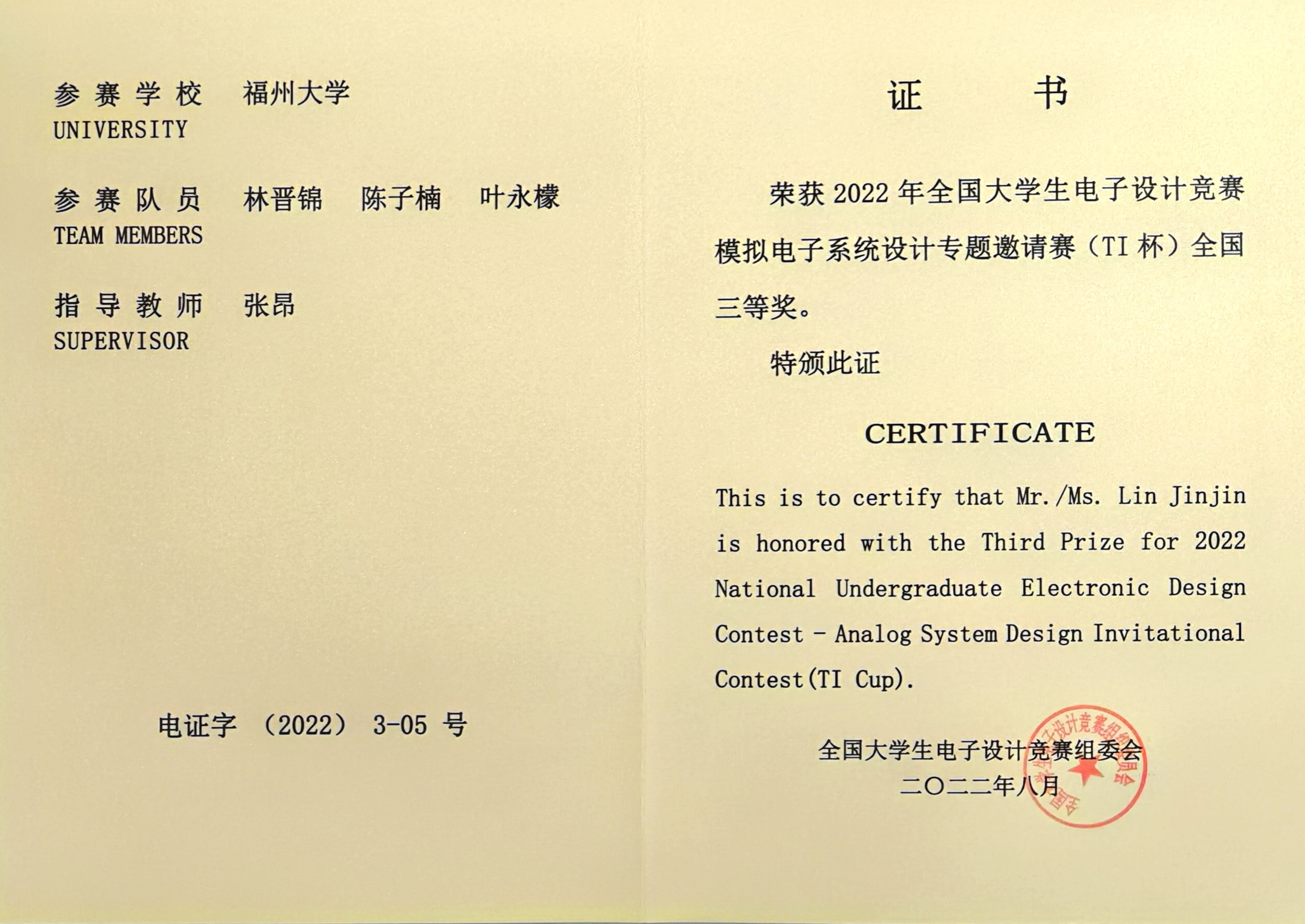 由全国大学生电子设计竞赛组委会主办,杭州电子科技大学承办的2022年全国大学生电子设计竞赛——TI杯模拟电子系统设计专题邀请赛,简称TI杯模拟邀请赛,于8月18日至19日在杭州成功举办。面对突发的杭州疫情,福大物信学子展现出“物信出场,势不可挡”的物信精神,克服了场地、设备等诸多困难,与来自全国各大高校的精英强队展开角逐,用扎实的知识,坚韧的毅力顺利完赛。最终杏吧传媒