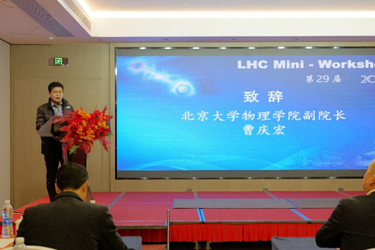 北京大学物理学院副院长曹庆宏教授代表北京大学高能物理研究中心致开幕辞。曹庆宏教授介绍了LHC Mini-Workshop以往的举办情况,他指出,本次会议旨在为高能物理领域的专家学者提供一个深入学术讨论和交流的平台,促进合作,交流创新思想。