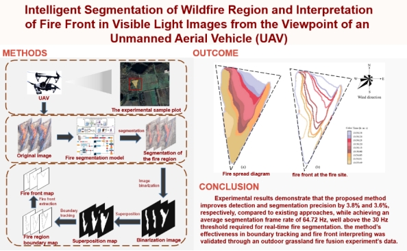数字媒体技术系李建微研究员团队(万佳莉,通信与信息系统硕士研究生)、东北林业大学林学院孙龙教授团队(胡同欣副教授、李兴东副教授)与英国Ulster大学Huiru Zheng教授团队合作,在摄影测量与遥感领域的国际顶级期刊《ISPRS摄影测量和遥感杂志》(ISPRS Journal of Photogrammetry and Remote Sensing,中科院一区Top,影响因子:11.8)上在线发表了研究成果《无人机视角下可见光图像野火焰区的智能分割及火线的解译》(Intelligent segmentation of wildfire region and interpretation of fire front in visible light images from the viewpoint of an unmanned aerial vehicle, UAV)。该成果以杏吧传媒