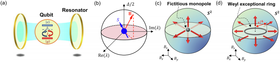 非厄米系统能够展现厄米系统所没有的奇异拓扑特征。非厄米性使得零维的点状拓扑缺陷扩展为一维的环状物体,称为外尔奇异环(WER),沿着该环系统的本征能和本征态都发生简并。WER可看作一个环状的磁单极,其所发出的虚拟磁场的强度相当于参数空间中的贝里曲率。这样的一维人工磁单极的拓扑效应可由陈数表征,其定义为参数空间中穿过包围该磁单极的二维流形的贝里磁通量。WER及其拓扑相变是非厄米系统区别于厄米系统的一个显著特征,但尚未在真正的量子系统中得到实现。