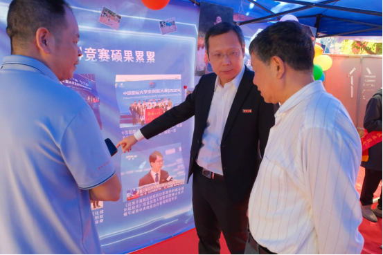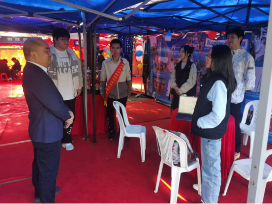 党委书记魏金明、党委副书记郑志刚等领导亲临现场,与在场师生亲切交流,询问赛事筹备及现场情况,为物信健儿加油助威。