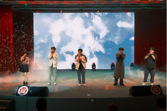 随后,舞台上灯光聚焦,歌曲串烧节目震撼登场。从《See You Again》的思念友谊,到《玫瑰少年》的坚韧不拔;从《起风了》中的自我探索,到《伴你成长》的温馨陪伴。他们的歌声跃动着青春的活力,如同夜空中的繁星,闪烁着希望的光芒,传递着对新生的美好祝愿和殷切期望。