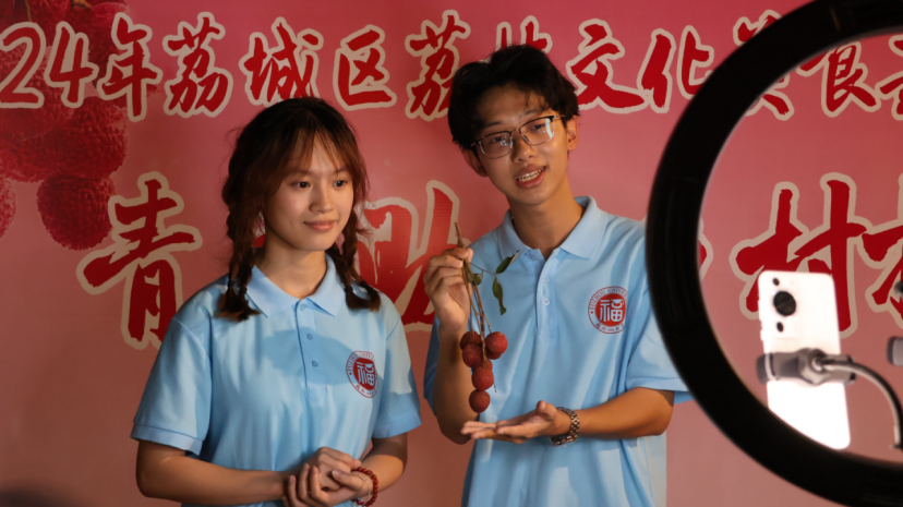 实践队第五站来到北大村,携手莆田学院志愿者,通过“抖音”直播,提高莆田状元红荔枝的知名度,促进当地农产品销售,助力果农扩大经济收益。