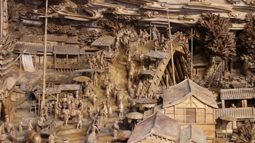 展馆内作品充分展现了莆田的精透微雕技法,其寓意大多展现祖国锦绣山河和劳动人民日常,贴近生活,更显郑先生匠心独运。