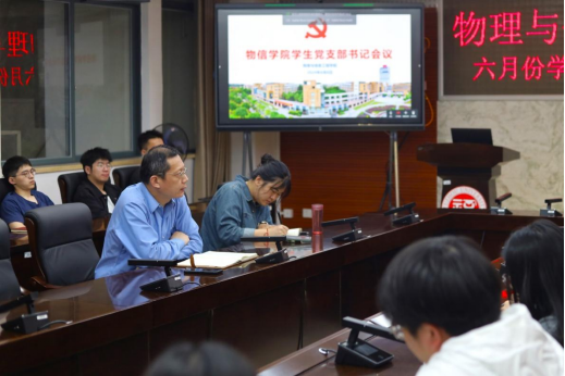会议的第二项议程由郑志刚副书记进行阶段工作总结。他强调了三点:一是要加强师生交流常态化,各个支部可以积极邀请党委委员参与到支部的活动中来,加强联动指导,从而提高支部活动成效;二是要进一步加强党建示范培育,不断提升学生党建标准化、规范化水平;三是发挥先锋模范作用,学生党支部书记要加强党员身份意识,提高政治站位,增强工作主动性,积极关心身边同学,展现出党员应有的风采和担当。