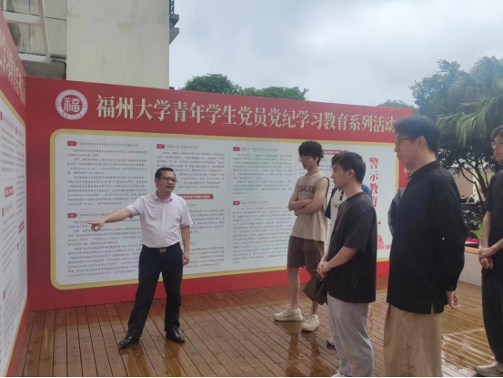 参观中,在22号楼楼宇兼合党支部书记方德汕老师的带领下,各位党员通过仔细阅读展览区关于科研学术造假、学生党员违纪事件等详实的图文介绍和案例资料,不断加深了对全面从严治党深刻内涵的认识和领悟。