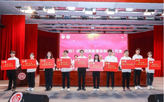 表彰大会在诗朗诵《书写青春华章》中拉开序幕。程树英院长向大会宣读了表彰决定。大会表彰对象包括:院校五四表彰集体和个人、院学风建设先进班级、院十佳大学生、校社会实践优秀团队及先进个人,国家奖学金及学科竞赛获奖学生。随后,在主席台上就坐的领导老师依次为先进集体和先进个人代表颁奖。