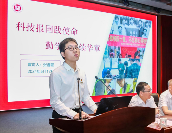 校十佳大学生、2020级集成电路设计与集成系统专业本科生张睿聪同学分享了自己在本科阶段学习专业知识、参加学科竞赛、组织志愿服务的先进事迹。他认为青春当勤学刻苦、乘风破浪,当勇于创新、敢为先锋,希望同学们能坚定理想信念,担当时代职责,让青春在践行科教兴国、人才强国的征程中披荆斩棘高歌猛进。