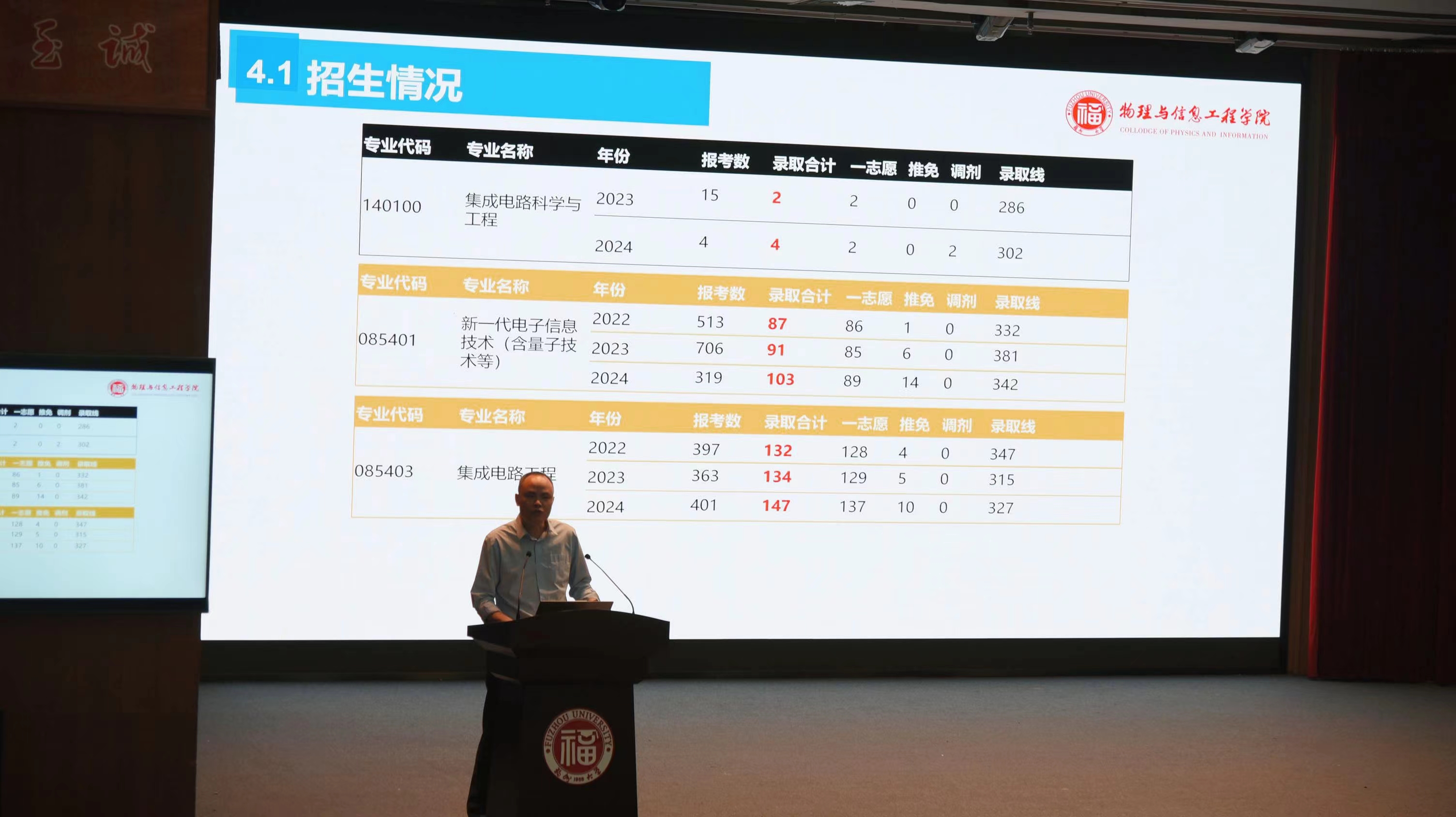 李福山教授则围绕学院学科分布、科研团队、研究生培养以及近三年的研究生招生情况详细分析了当前本院考研升学整体情况。他鼓励同学们结合个人学业情况慎重选择一志愿,全力以赴备考,力争一战成硕。