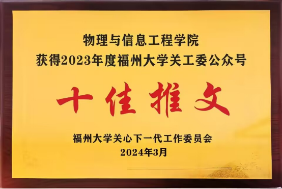 关工委获评宣传工作先进单位,党委副书记郑志刚获评关工委优秀党务领导,团委书记陈山获评关工委优秀秘书长,3名学生获宣传工作先进个人,获评十佳推文一篇。