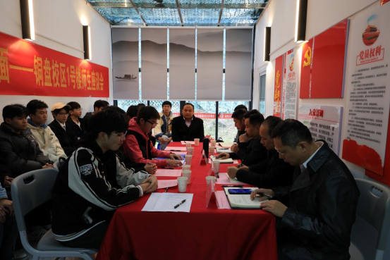 在学生代表交流座谈环节,与会学生向领导老师讲述了自己在铜盘校区的学习生活感悟和遇到的困惑,同时就学校后勤工作和学生社区建设提出了意见和建议。