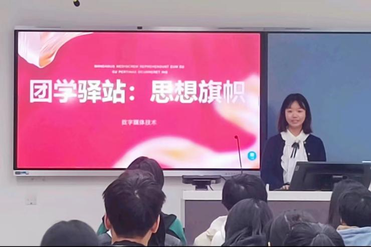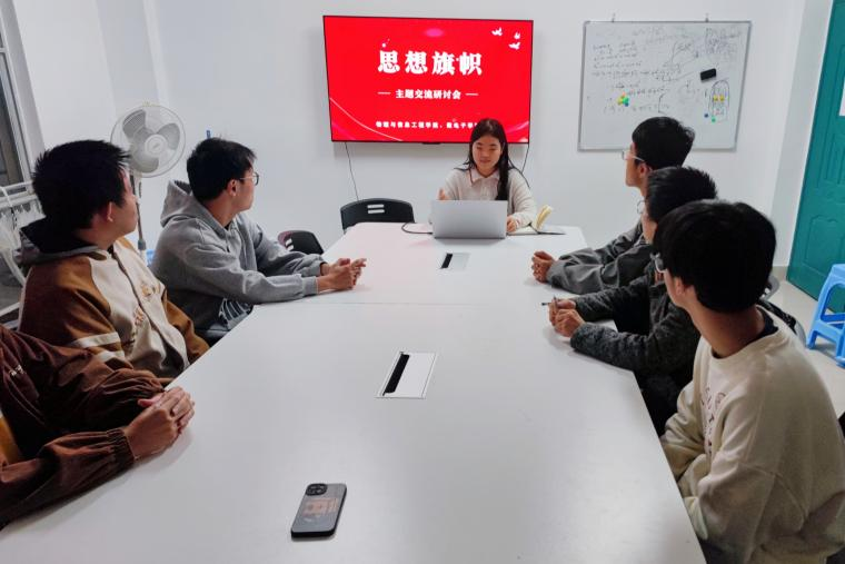 青马宣讲团成员李晨曦、齐雅晴、林丽金同学组织2022级数字媒体技术01班团支部、2022级电子信息类01班团支部、2022级电子信息类02班团支部、2022级集成电路设计与集成系统01、02班团干部和入团积极分子开展“思想旗帜”专题的理论学习团课1次、分享交流会2场。会上,大家就“六个必须坚持”“两个结合”等政治名词的含义、《论党的青年工作》等书籍的精神要义展开学习与讨论。