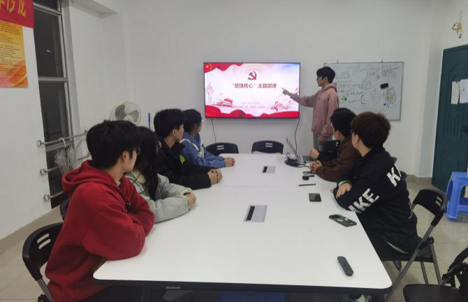 青马班宣讲团成员林鸿皓、王钧、周琳皓同学组织2022级光电信息科学与工程01班团支部全体团员,2022级电子信息类03、04班和2022级电子科学与技术01、02班团干部、入团积极分子开展“坚强核心”专题的理论学习团课1次、分享交流会2场。通过导学《开辟马克思主义中国化时代化新境界》书籍帮助团员们深刻领会“两个确立”、“四个意识”、“四个自信”、“两个维护”等政治名词的含义,让同学们深刻感受到坚持和完善党的领导,是党和国家的根本所在、命脉所在,是全国各族人民的利益所系、命运所系。