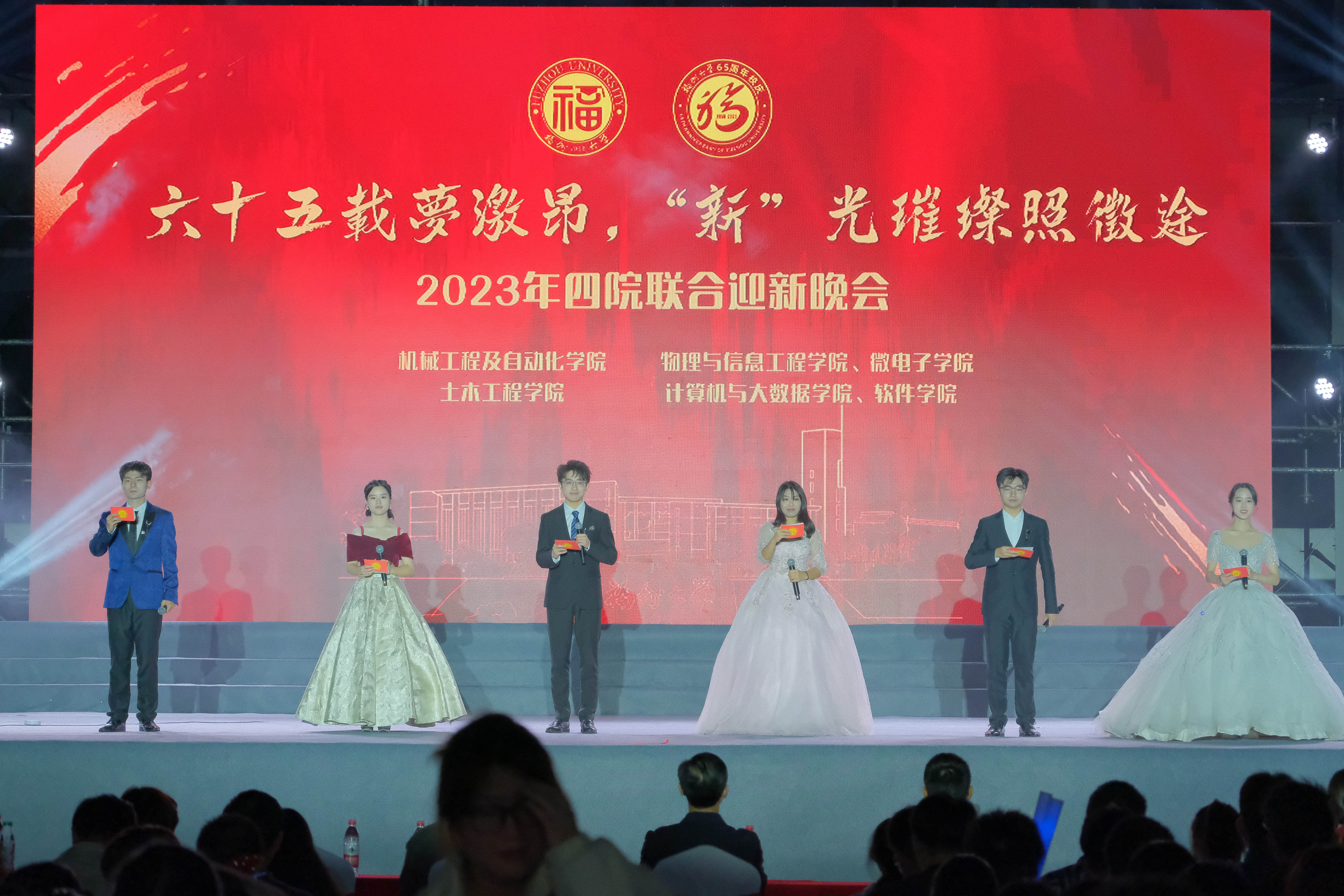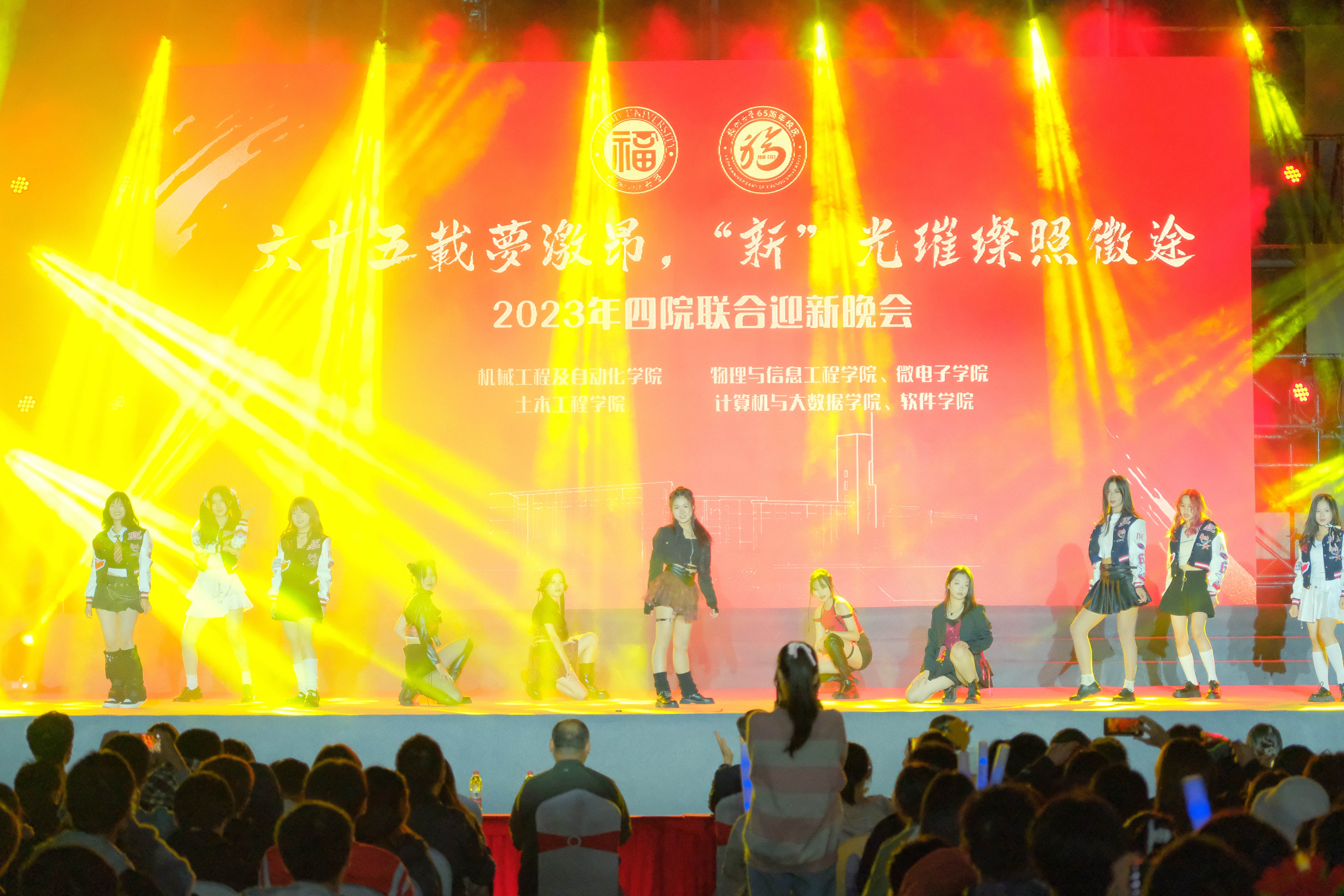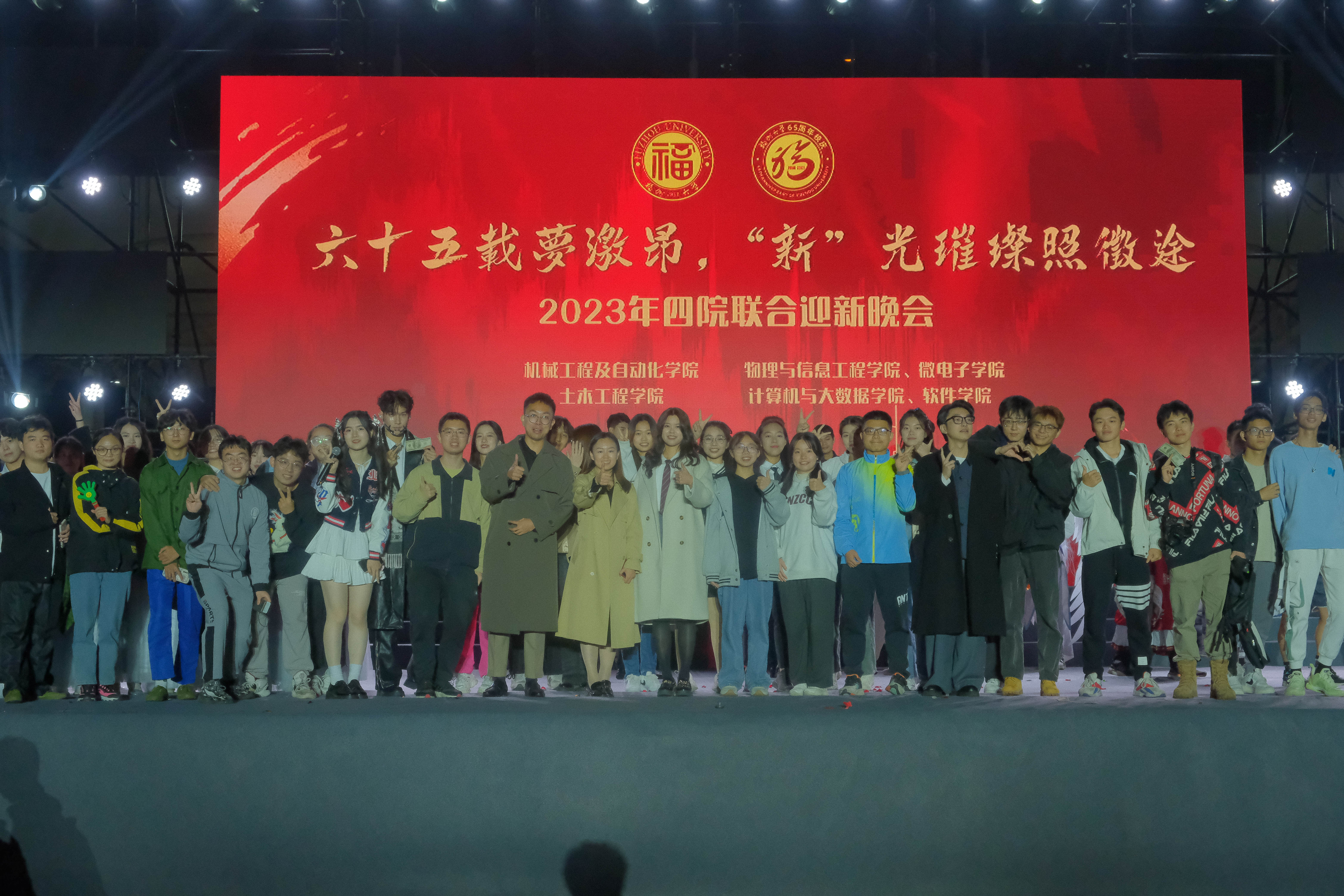 “六十五载梦激昂,‘新’光璀璨照徵途”2023级迎新晚会于铜盘校区操场隆重举行,本次晚会由机械工程及自动化学院、土木工程学院、计算机与大数据学院、软件学院与杏吧传媒