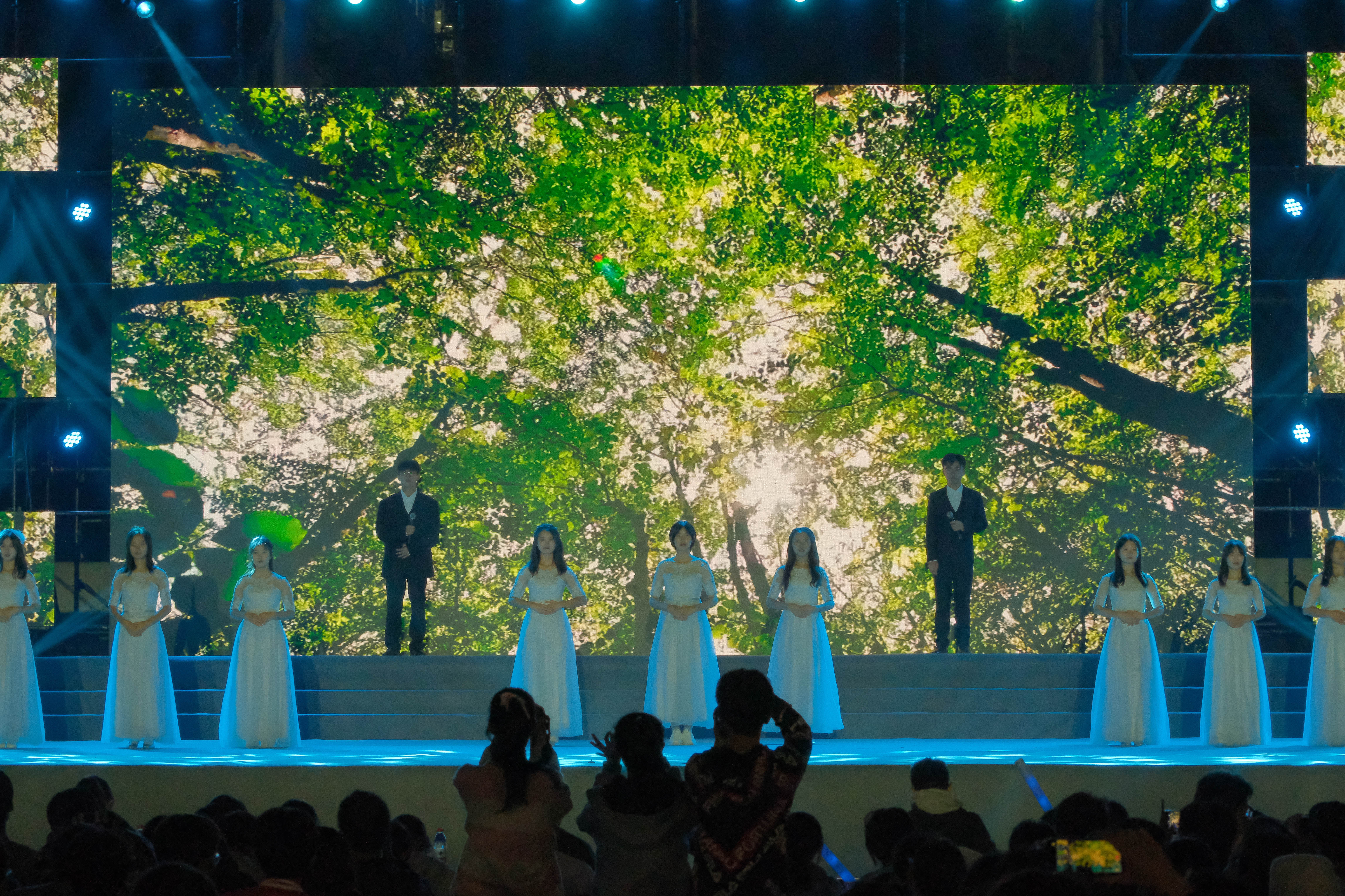 迎新晚会上,节目丰富多彩,有悦耳动听的独唱和歌曲串烧,也有Rap《迷途无畏》;有生动展示了大学生点外卖的现状小品《艰难抉择》,也有反映了大学生的拖延症、提醒大家今日事今日毕的小品《消失的周日》;有中式乐器演奏的《牵丝戏》、民族舞蹈《Chirayliq》,更有视觉盛宴舞蹈《Kitsch+我最红》引得全场阵阵惊呼。除此以外,温暖的手语表演《如愿》,走秀《Disco Inferno》和班导的特别节目舞蹈《ggbond》都令人眼前一亮。