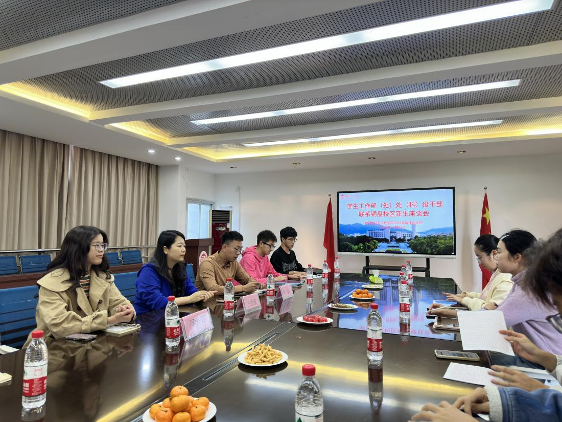 新生班级座谈会在铜盘校区顺利举行。学生工作部(处)研究生教育管理科科长王薇薇老师出席座谈会,2023级本科生辅导员刘涛老师、周蓉芳老师和2023级数理综合班学生代表参加座谈会。