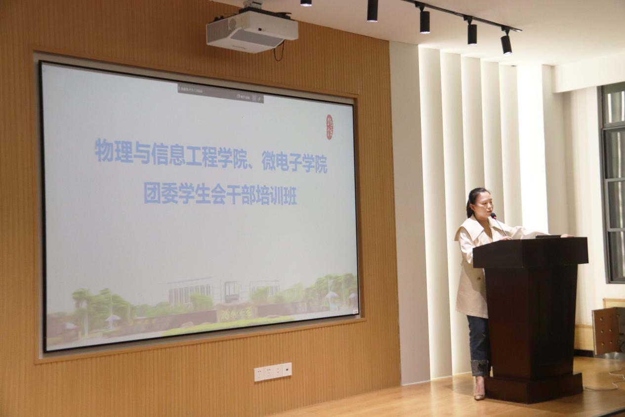 团委学生会干部培训班第一期于物信南楼思源厅顺利开展。会议由学院团委副书记苏海姬老师主讲,全体两委干部参会学习。