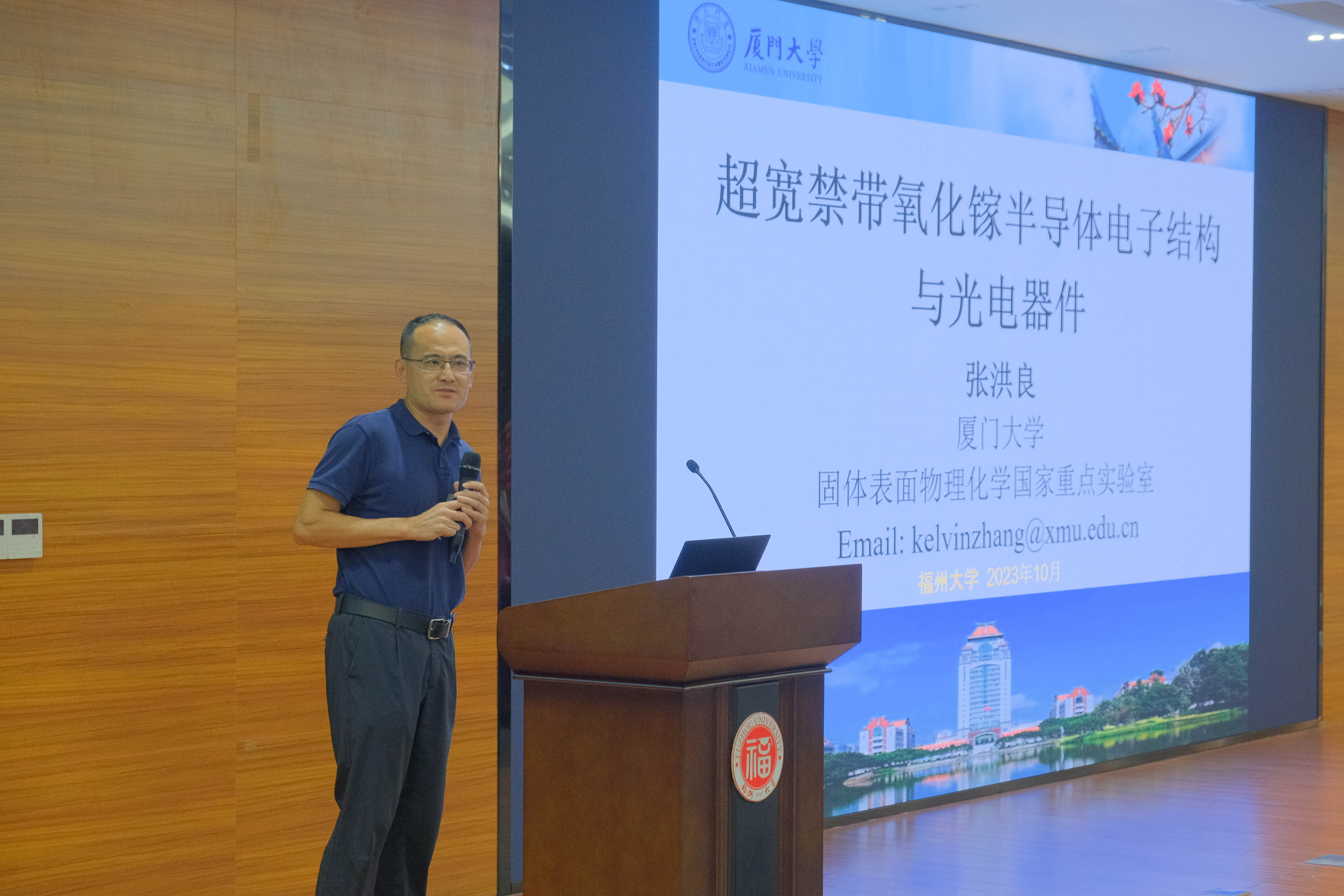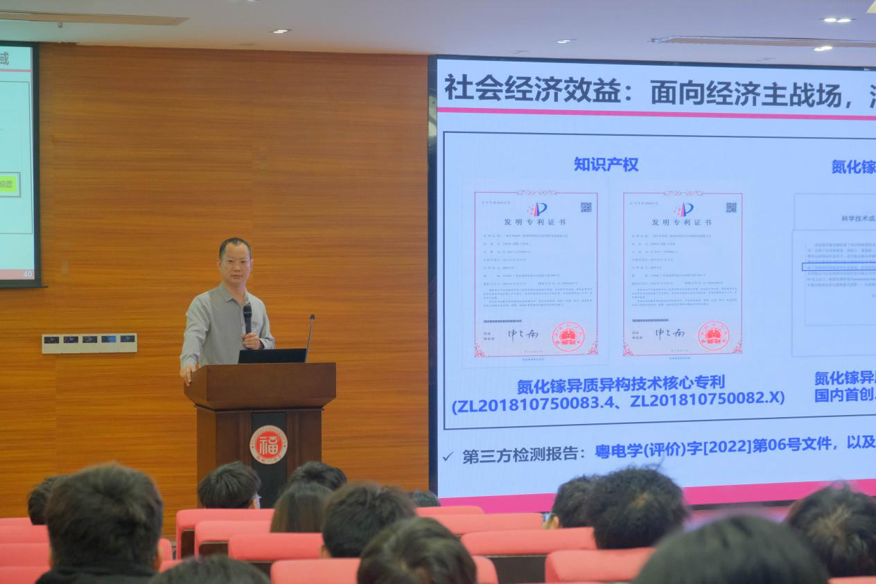 厦门大学化学化工学院教授、国家高层次“青年”人才张洪良的报告为《超宽禁带氧化镓半导体电子结构与光电器件》。张教授先是介绍了半导体的发展历史,讲述了四代半导体的各自的发展前景和应用领域,然后重点介绍氧化镓外延薄膜表界面电子结构,针对Si和Sn掺杂氧化镓电子结构的研究得出结论:虽然Sn掺杂制备方法简单,但是成品的电导率等性质不如Si掺杂的氧化镓,同时他对氧化镓材料未来的发展充满期待。