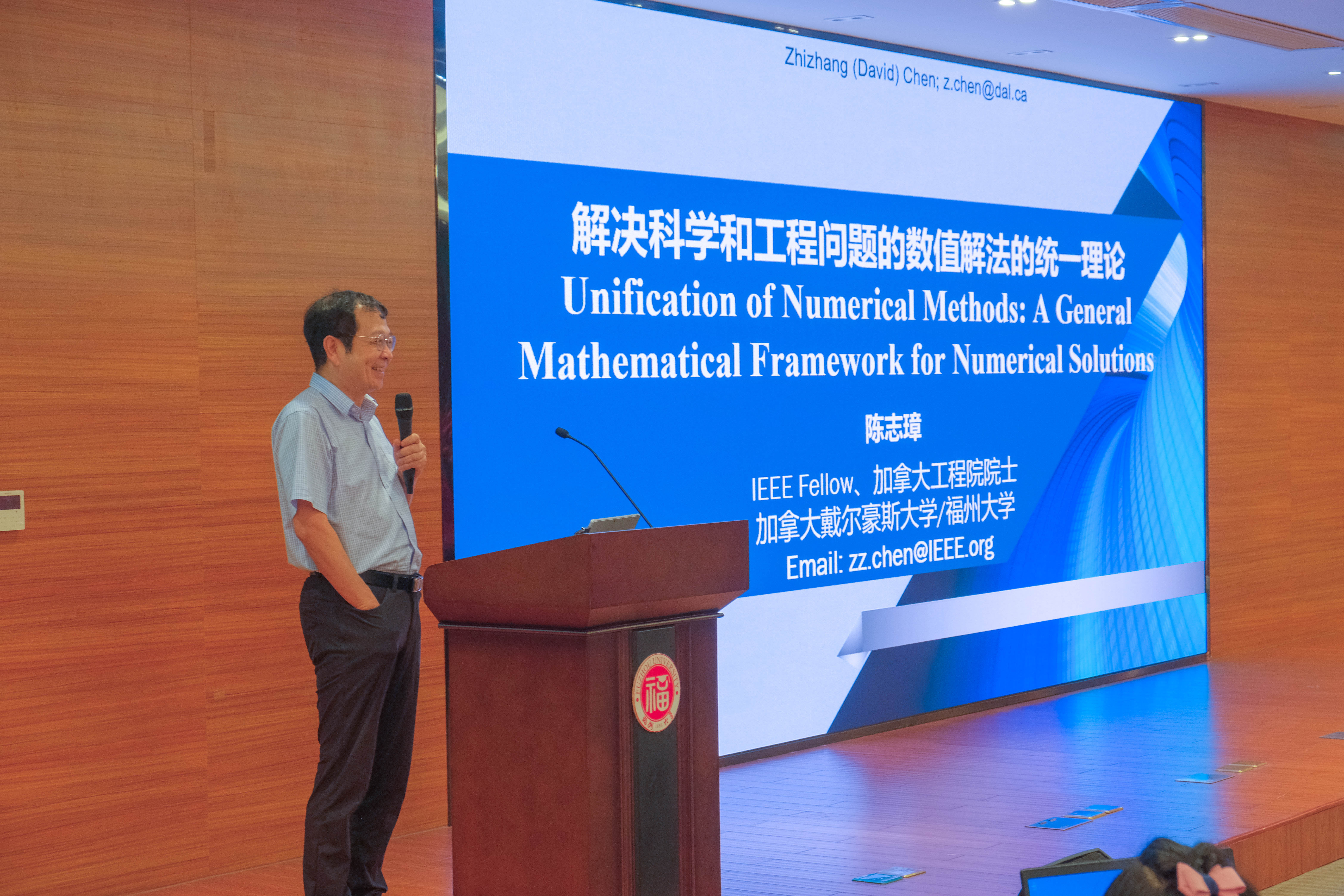 国家高层次人才、加拿大工程院院士陈志璋教授带来了题为《解决科学和工程问题的数值解法的统一理论》的报告。他提出了数值方法的统一理论:采用加权残差方法系统地推导现有的数值方法,然后提出了基于节点的无网格方法的统一计算平台。这项工作不仅统一了迄今为止已有的数值方法,而且还建立了不同方法的混合应用的统一数学框架,为学习、理解和运用各种数值方法开辟了新的视角和途径。