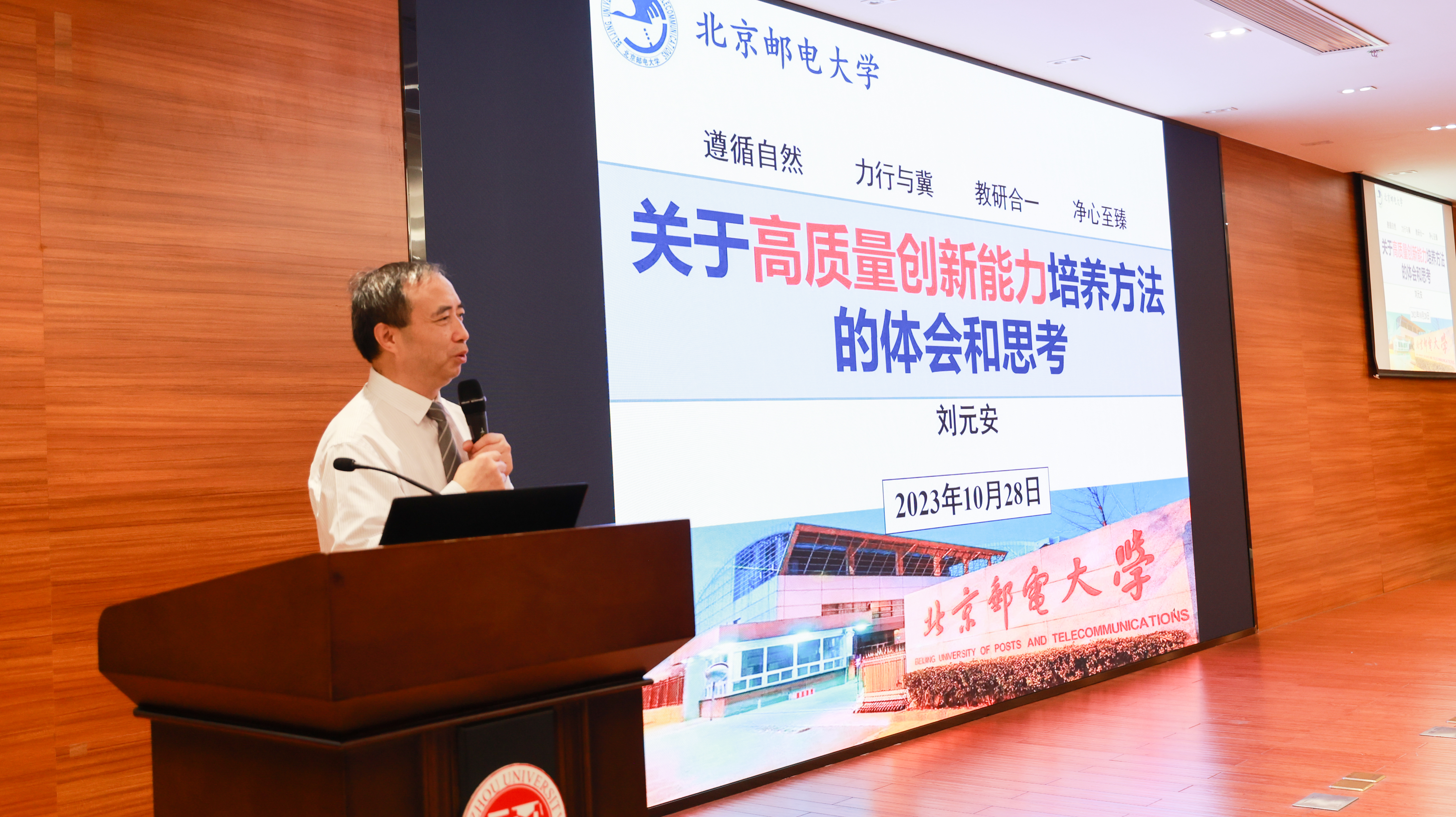 来自北京邮电大学电子工程学院刘元安教授带来的是题为《关于高质量创新能力培养方法的体会和思考》的报告。他通过介绍如何做高质量教育、如何依循科研人才成长规律、如何进行创新人才的培养与自我培养,有效提升创新人才创新能力培养的效率和效果,为同学们成为创新人才的成长之路指明方向。