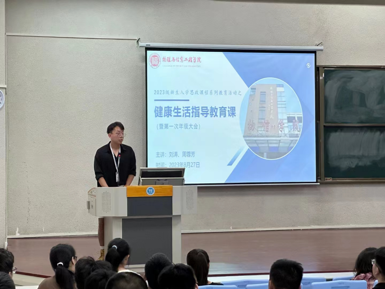 开展“养成生活好习惯,开启人生新篇章”健康生活指导专题教育暨2023级本科生年段会,本次会议由2023级本科生辅导员刘涛、周蓉芳老师主讲。