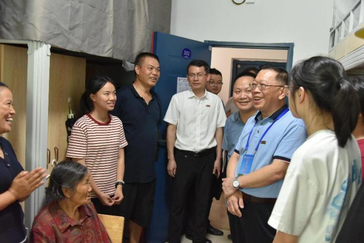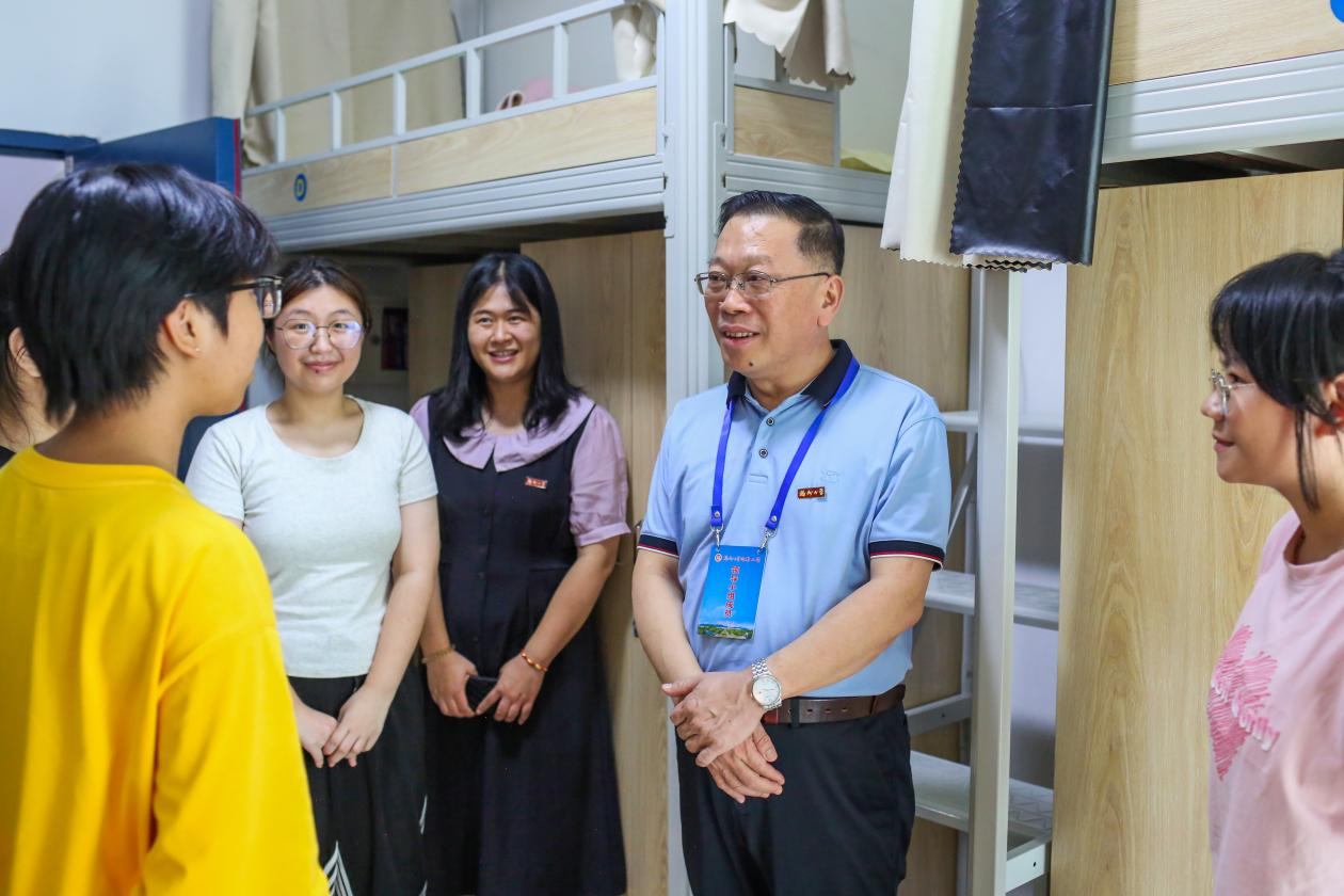 党政领导的陪同下亲切慰问迎新工作人员、学生志愿者和新生,帮助新生更快适应大学生活。