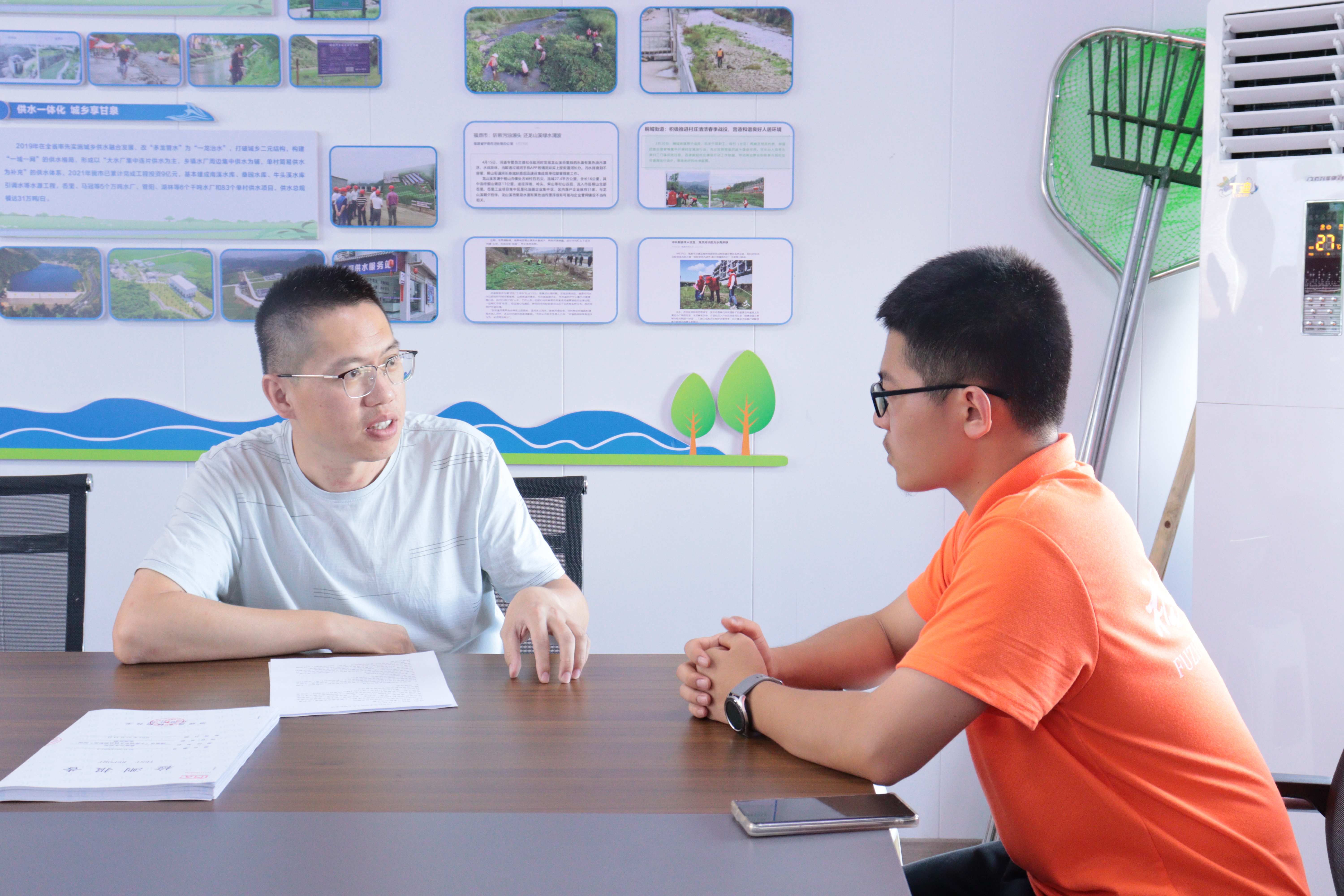 “溪心河护”实践队的到来表示热烈欢迎,热情地提出愿意与实践队组建更为紧密的合作关系,促进双方在媒体平台和实践活动等方面的交流共建。杨丹老师向其表示感谢,提出希望能够依托福鼎市水利局的专业设备对桐山溪进行更深入的调研,并表示能够借此机会促进校地合作,推动更多青年大学生深入基层,为河湖长制在福建省的有效推行献言献力。