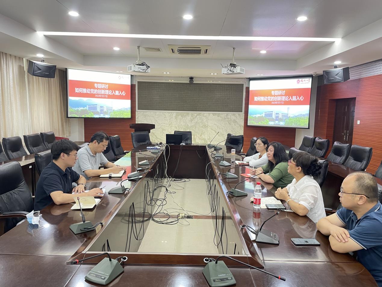 为深入开展学习贯彻习近平新时代中国特色社会主义思想主题教育,2023年7月17日星期一,于祥联厅召开专题研讨会议,研究生教育管理工作室以“如何推动党的创新理论入脑入心”为主题展开讨论。各位小组成员就此主题开展了深入讨论。