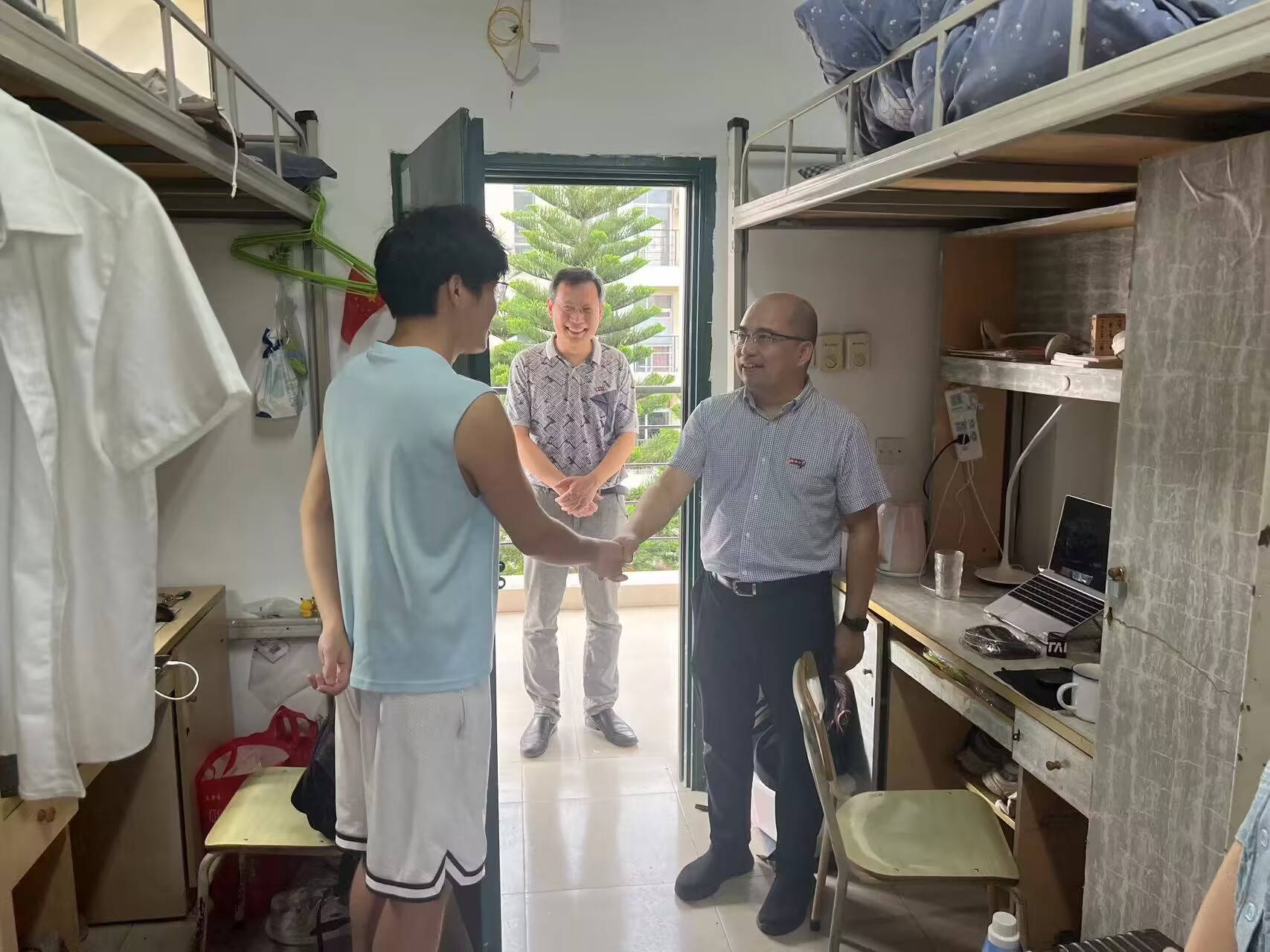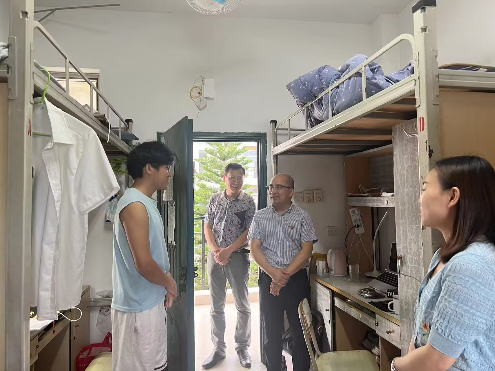 为深入学习贯彻习近平新时代中国特色社会主义思想,推进主题教育走深走实,进一步做好毕业生文明离校工作,6月19日下午,学院党委书记魏金明、党委副书记郑志刚、毕业班辅导员苏海姬以及研究生辅导员陈晓峰一同前往2023届毕业生宿舍,关心慰问即将开启人生新篇章的学生们。