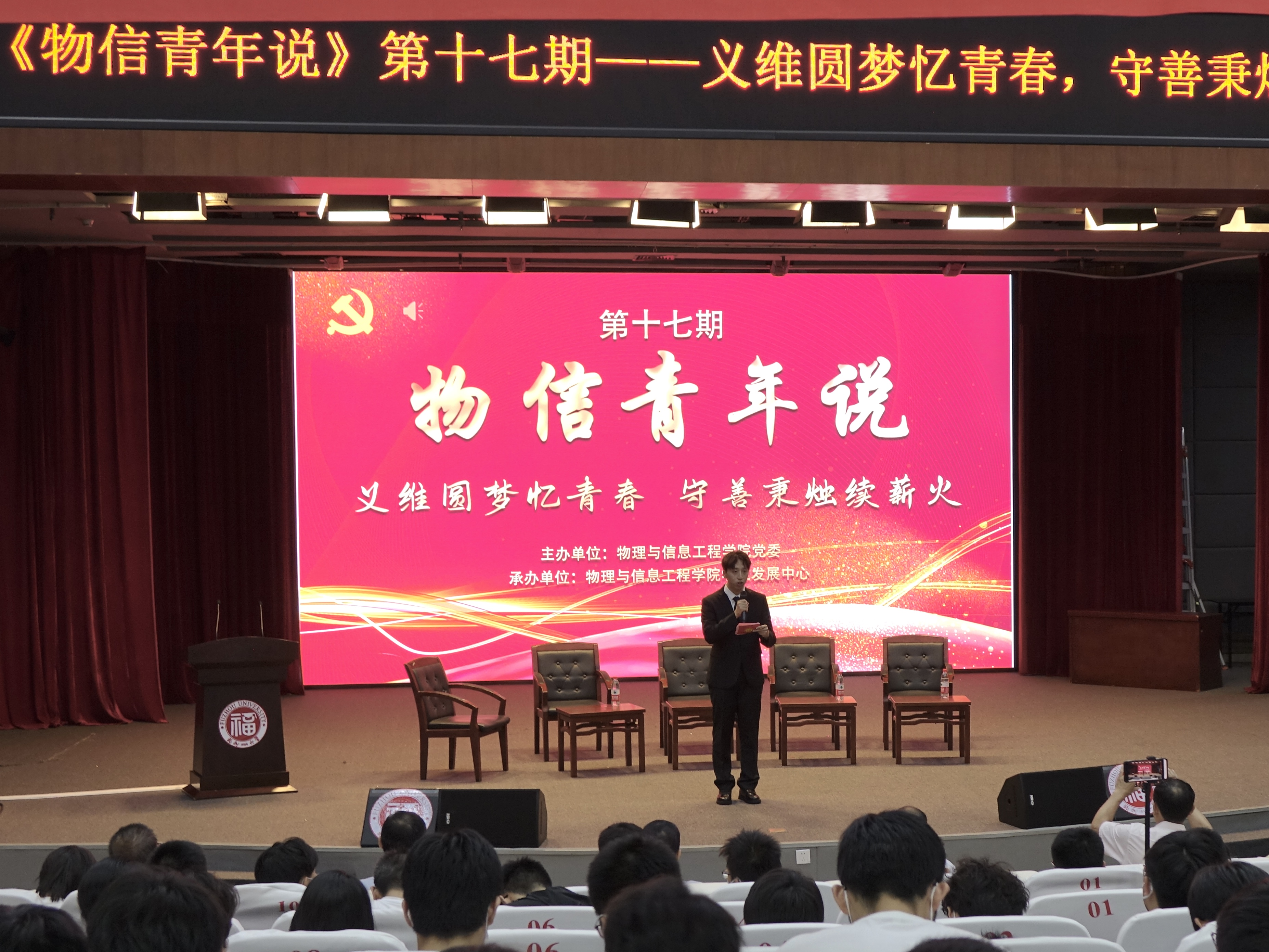 活动的最后由义务维修队代表,怀着校友对青年学子的寄语与期盼,怀着义务维修队的慎思笃行、行而不辍精神嘱托,怀着学院的美好祝福与殷殷期盼慷慨激扬地朗读了《物信颂》,为本期《物信青年说》画上完美的句号。