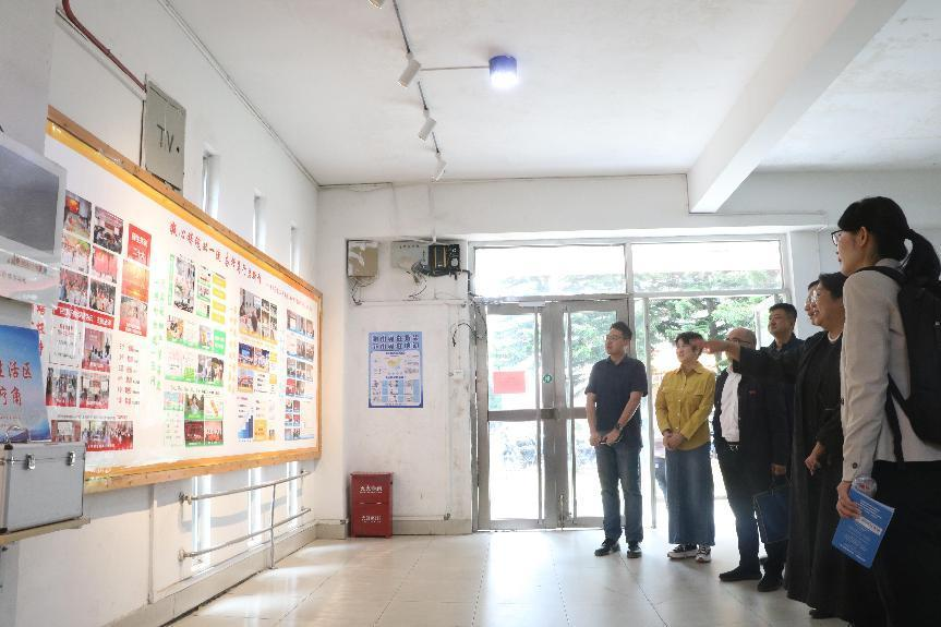 潘璐副书记一行参观了16号楼宿舍楼“一站式”社区服务建设的情况,包括一楼活动室的党建园地,二楼活动室的学生发展与支持空间、社区宣传氛围营造等。杏吧传媒