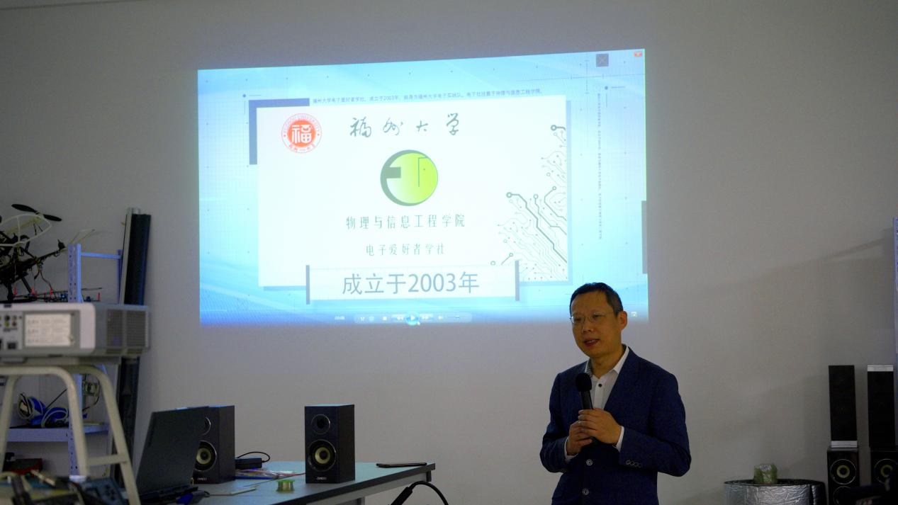 随后,电子爱好者学社前指导教师刘征宇老师,也对往届社员的到来表示热烈的欢迎,希望他们能够多回母校,增进交流。同时,他还对现任社员提出殷切的期盼,希望他们能够扎实学习,在自己的专业上走得更远、见识更广,将电子社发展得更好。