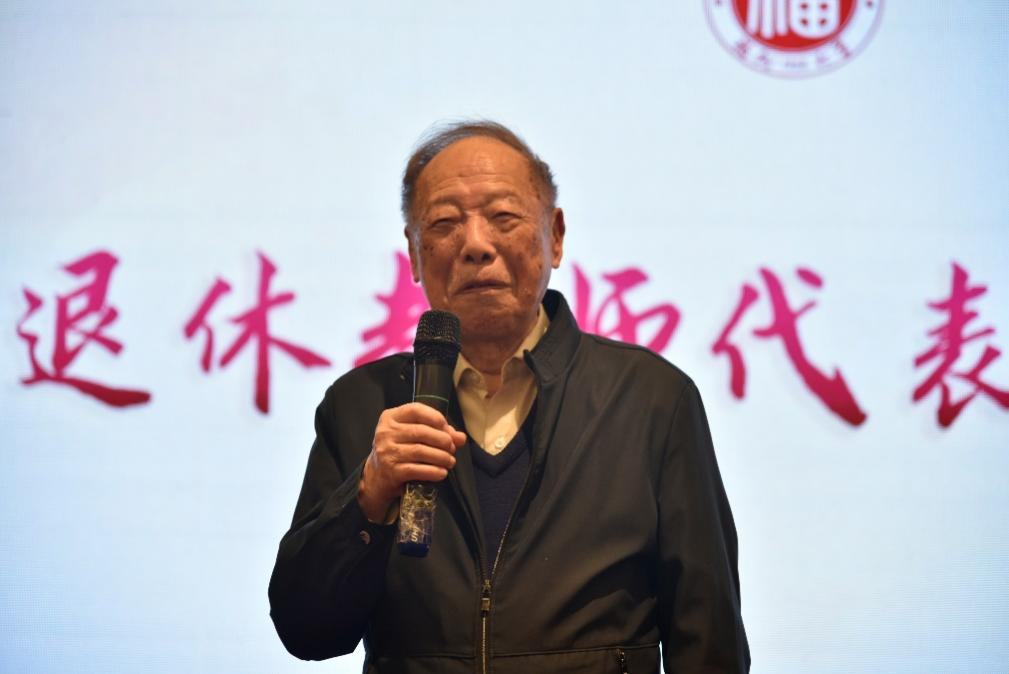 随后,离退休教师代表陈和巢老师、陈诗铨老师、卞伯达老师、刘大茂老师、余轮老师依次上台发表了自己的感言和寄语,虽然四十多年过去了,但是老师们心系学生的牵挂从未改变。