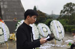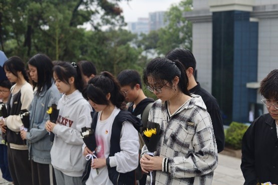 在微微细雨映衬下,福州市文林山革命烈士纪念碑显得格外庄严肃穆。 师生们胸戴党徽、校徽,手捧鲜花,来到革命烈士纪念碑前肃穆而立,鞠躬默哀,整理挽联,在党服中心主任陈国庆带领下向革命先烈们表达崇高的礼赞,后绕革命烈士纪念碑一周,依次献上鲜花寄托哀思。在默哀之中,师生们重温百年党史,感悟奋斗初心,也寄托对革命先烈们的深切哀思和无限敬仰。