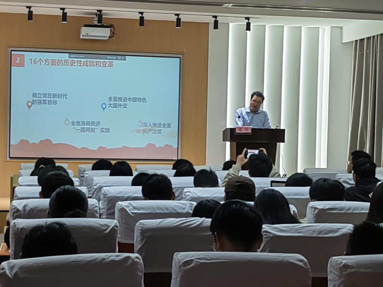 党委委员、副院长夏岩同志于学院思源厅为光学实验室研究生党支部、2019级应物、数综、光电、数媒、物联专业等6个学生党支部70余名师生党员开展以“踔厉奋发,勇毅前行——学习贯彻党的二十大精神”为主题的专题党课。