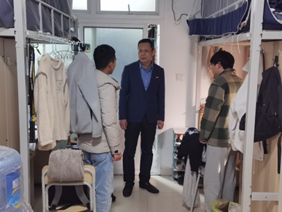 郑志刚副书记一行深入学生宿舍,围绕宿舍是否存在违规使用违禁电器以及宿舍卫生情况进行全面检查,并与学生进行了亲切交谈,叮嘱同学们在日常生活中要注意用电安全,勤开窗、多通风,保持干净整洁的卫生环境。在交谈过程中,郑志刚副书记还对同学们提出了殷切的希望,希望同学们树立远大理想,不负家长、老师和学校嘱托,珍惜大学时光,好好学习,早日成为一名担当民族复兴大任的时代新人。