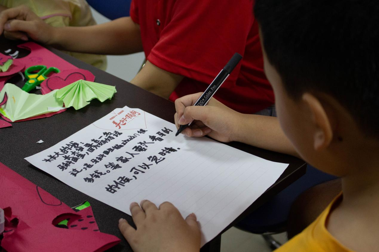在活动开展期间,实践队队员还与孩子们一起,使用爱心背包中的水彩笔、图画本描绘出自己家乡的模样。在“美好书信”环节,孩子们也纷纷写下给未来自己的寄语,分享了自己的心愿,抒发对美好未来的期望。