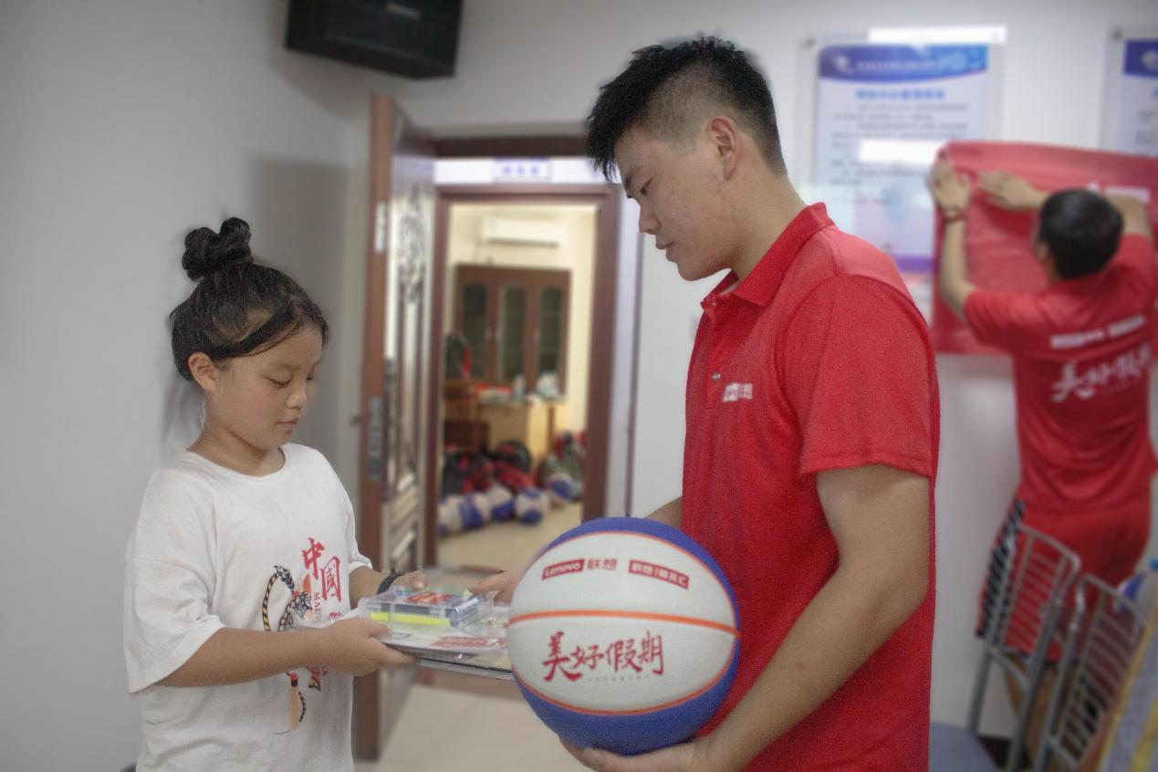 实践队队员背起美好假期爱心包裹,将其带到乡村一线,送给有需要的儿童。在爱心包裹中不仅有篮球等运动器材,还有水彩笔、图画册、刮画本等礼品,在活动期间,实践队员与孩子们一起用画笔描绘家乡的美好,并用体育锻炼活动加强友谊,增进了解。