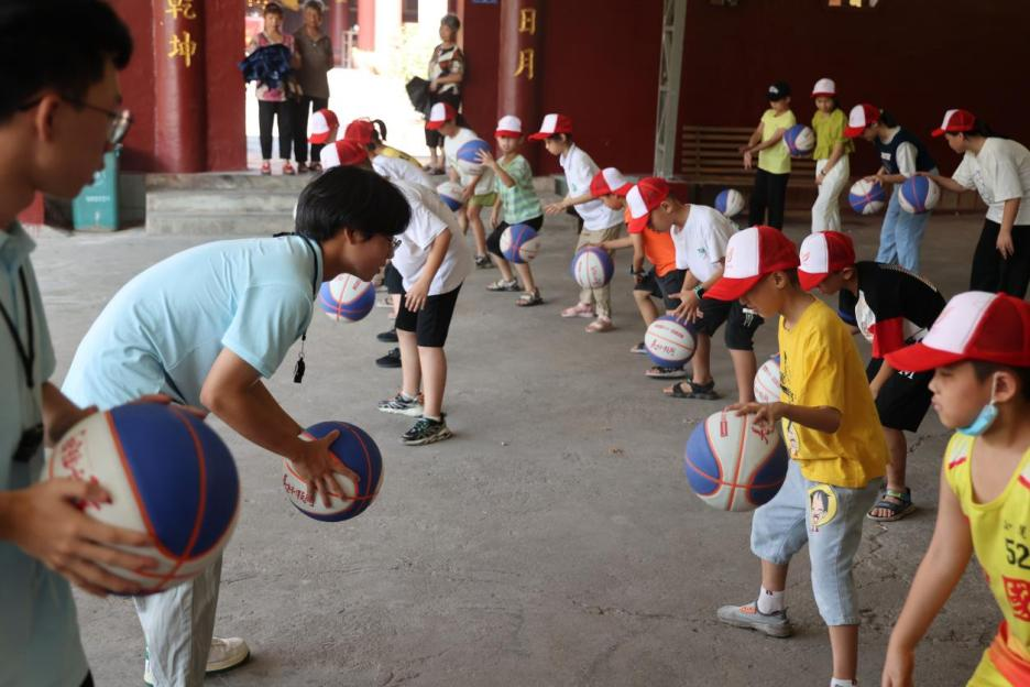 在篮球课堂上,实践队队员们教授了小朋友们基本的篮球知识和运球技巧,组织了友谊篮球赛,让他们对篮球运动有了进一步的认识,也增进了彼此的交流。