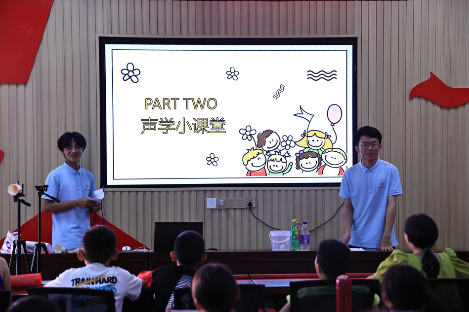 在科技启蒙课堂的教学中,实践队队员们通讲述了声音的产生、光的折射和摩擦起电等有趣自然物理现象,和小朋友一起制作太阳能风扇和回力拉线小车等,引导小朋友去理解生活中常见的物理现象,培养其对自然科学的探索兴趣。