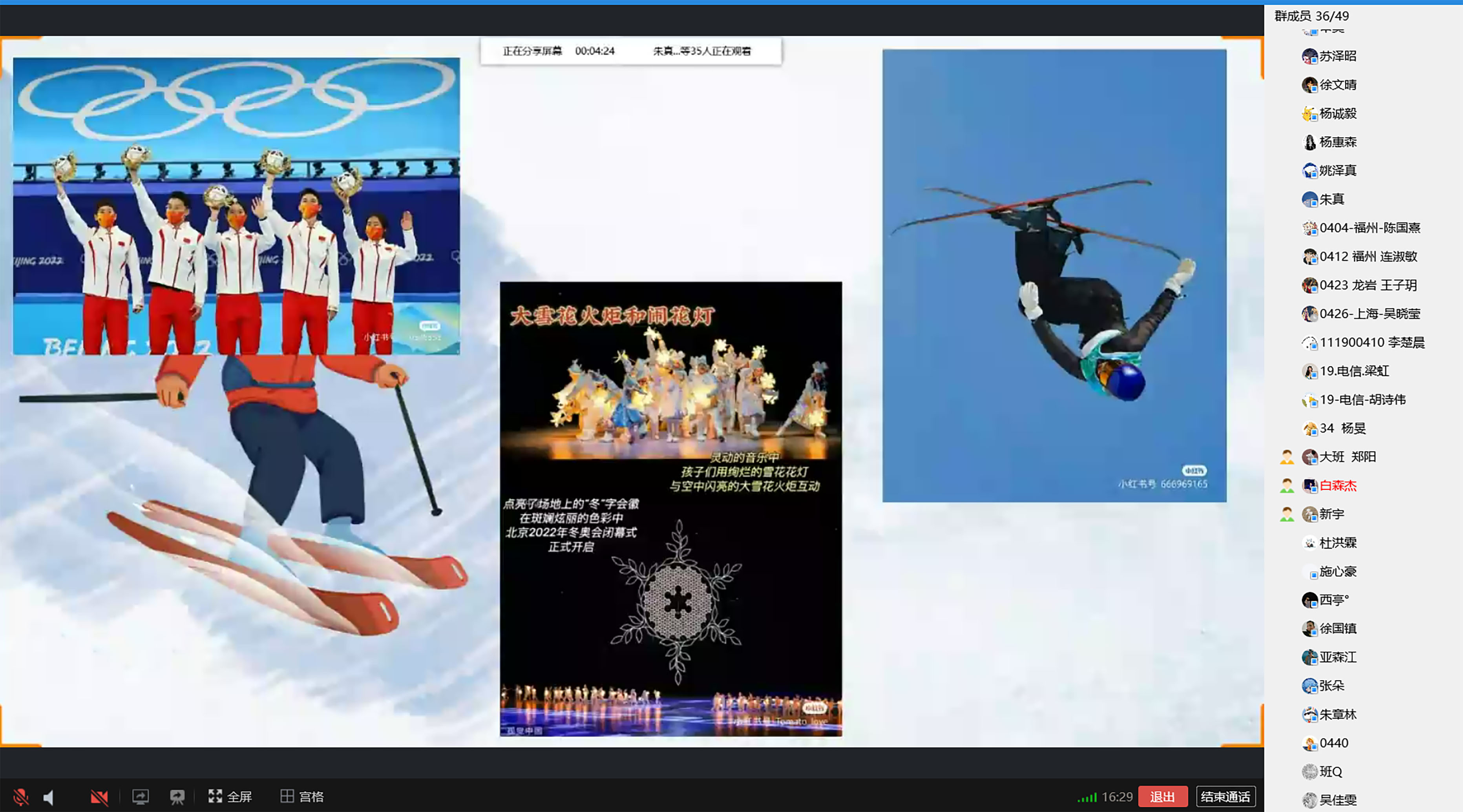 活动中,各班级有组织地开展线上专题会议,积极热议冬奥会与残奥会总结表彰大会上的重要讲话,并观看相关的图文与影音资料,认真学习了这青春激情的冬奥精神,营造了充满活力的青春氛围。