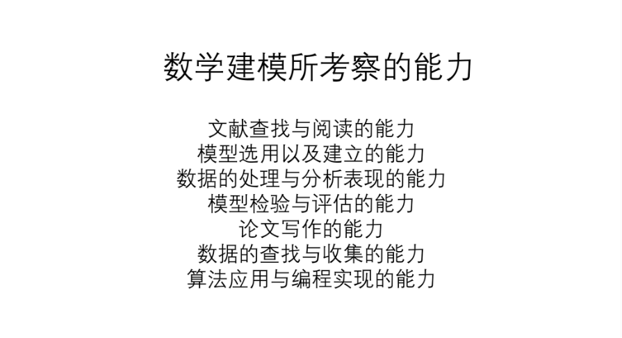首先,他介绍了数学建模比赛考察我们的能力并希望我们能逐渐培养起这些能力,并肯定了这些能力的培养对个人成长的正面作用。