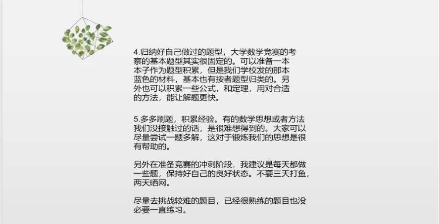 最后,学长以自身经验为依据,提醒学弟学妹们在学习过程中注重锻炼计算能力,多刷题,多归纳。