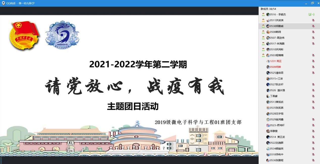 学院全体团支部积极响应号召,通过防疫政策解读、知识宣传等多种线上形式进行主题团日学习活动,充分发挥基层团支部的工作职能和组织动员力量,引导广大团员遵守疫情防控各项规定,积极营造科学防疫良好氛围。