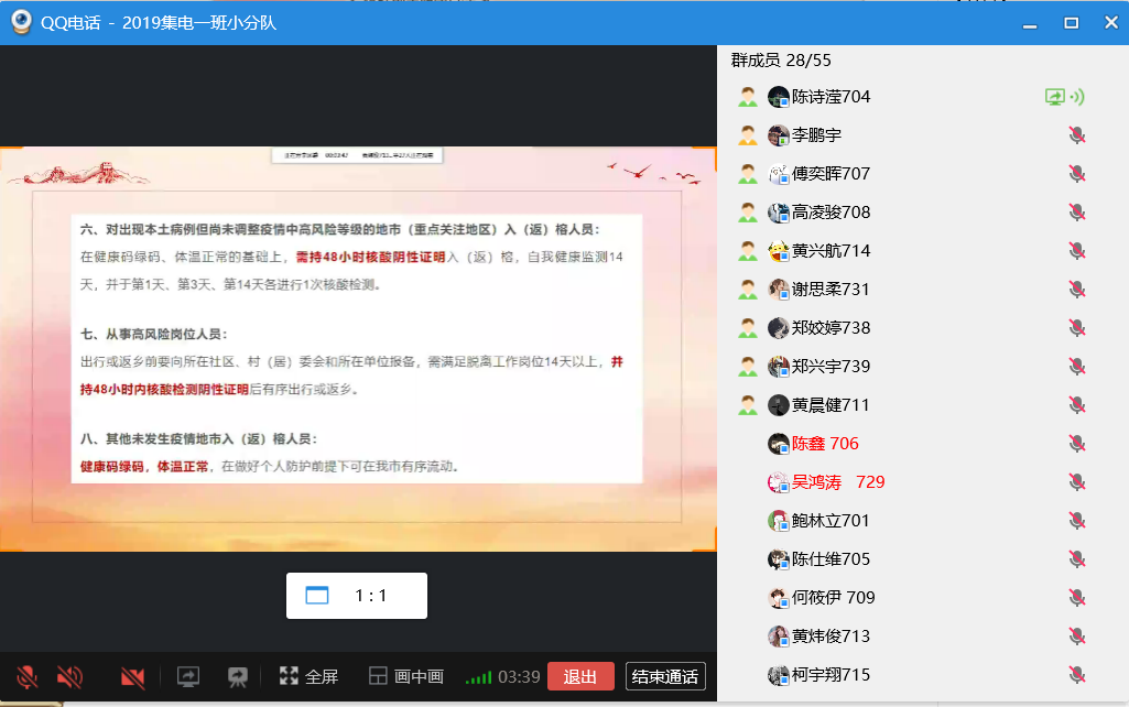 活动中,各团支部开展线上专题支部会议,准确宣传防疫手段,及时传达防疫信息,倡导同学们听从学校安排,主动从官方渠道获取权威疫情进展,不信谣、不传谣。各班级进一步强化班级网格化管理体系落实每日健康监测,积极配合学院做好信息排查工作,各团支书引导支部成员承诺践诺,在做好自身防控的同时,积极营造良好的学习生活氛围。
